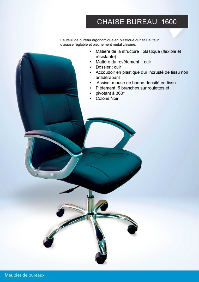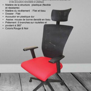 Piétement :5 branches sur roulettes et pivotant à 360°.