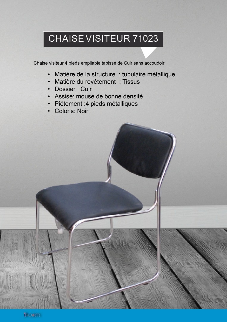 Chaise visiteur 4 pieds empilable tapissé de Cuir sans accoudoir