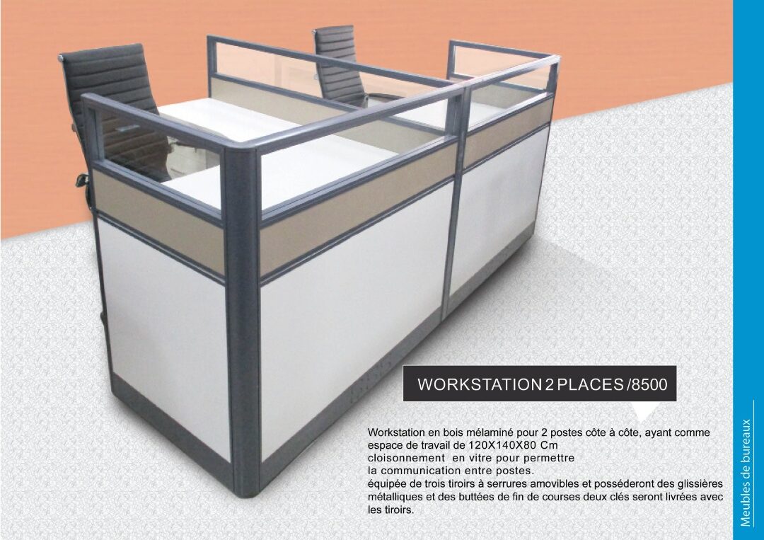 Workstation en bois mélaminé pour 2 postes côte à côte,